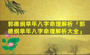 郭 🌷 德纲八字命 🌼 理解析 🐟