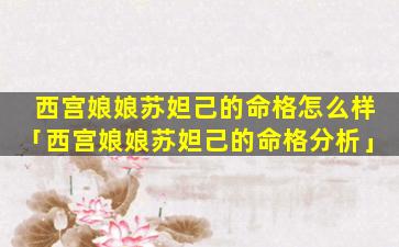 1、西宫娘娘苏妲 🦍 己的命格怎么样
