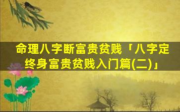 2、八字定 🐡 终身富贵贫贱入门篇(二)