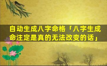 2、八字生成 🐒 命注定是真的无 🐶 法改变的话