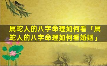 属蛇 🕷 人 🐺 的八字命理看婚姻 🐋