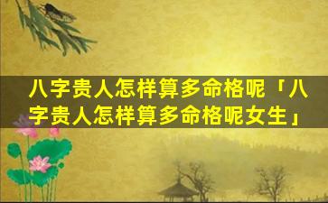 3、八字贵人怎 🕷 样算多命格 🐕 呢男