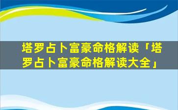 塔羅占卜 🐠 富 🦅 豪命格解读大全 🌹