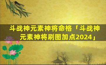2、斗战神元素神 🐋 将 🐅 刷图加点2024