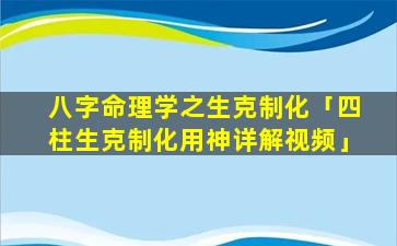 视频链接:视频简介:本视 🐧 频详细讲解了四柱生克制化用神的相关 🦈 知识,包括: