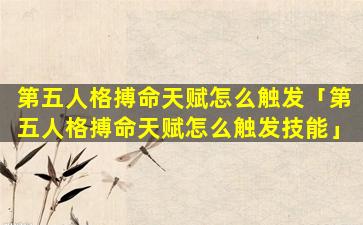 3、第五 🐯 人格搏命天赋怎么触发的