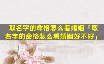 2、取名字的命格怎么看婚姻 🌺 好不好
