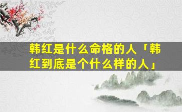 1、韩红 🕊 是什么命 🐳 格的人