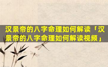 1、汉景帝 🐈 的八字命 🍀 理如何解读