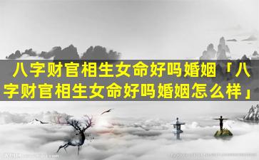 3、八字 🕊 财官相生女命好吗婚姻好吗