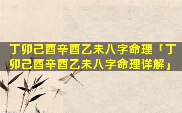 丁卯己酉辛 🐒 酉乙未八字命理 💐 详解