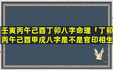 2、丁卯丙午己 🐕 酉甲戌八字是不是官印相生