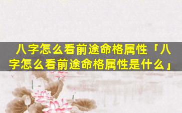 2、八字怎么看前途命格 🐼 属性是什么 🐘