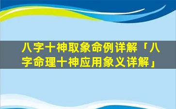 十神取 🐬 象的 💐 灵活 🐶 运用