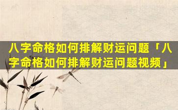 1、八字命 🪴 格如何排解财运问题
