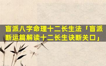 盲派断 🐛 运篇解读十二 🦈 长生诀断关口