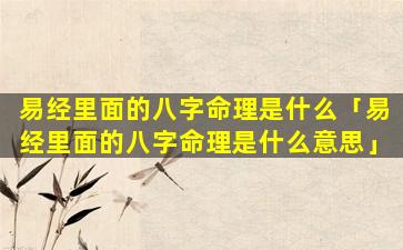 1、易 🐋 经里 🍀 面的八字命理是什么