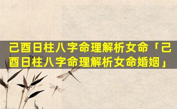 己酉日 🌾 柱女命八字婚姻解 🐘 析 🌳