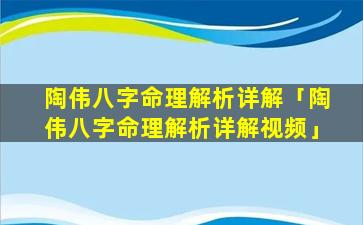 3、陶伟八字命理解析详 🕷 解 🐧 大全