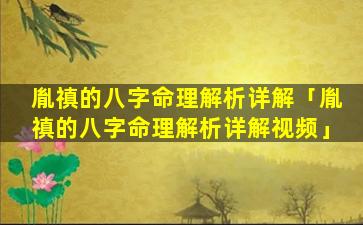 2、胤禛的八字命 🕊 理解析详解 🌹 视频