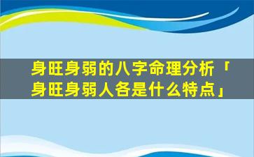 2、身旺身弱人各 🌼 是什么特点