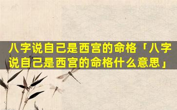 2、八字说自 🐼 己 🌼 是西宫的命格什么意思