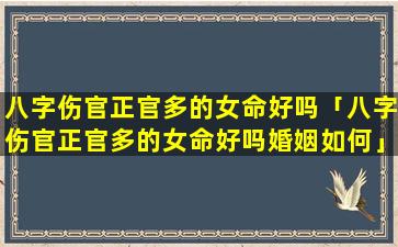 2、八字伤官正官多的女 🐟 命好吗婚姻如何