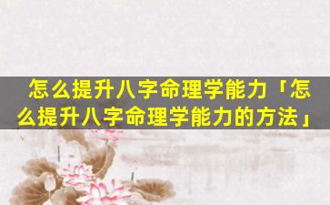 3、怎么 🦁 提升八字命理学能力呢 🐛