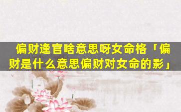 4、偏财逢官啥意思呀女命格 🐺 是什么 🐱