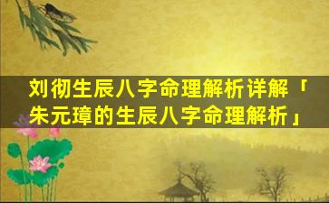 1、刘彻生 🐺 辰八字命理解析详解 🐒