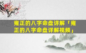 2、雍正的八字命盘 🦋 详解视频 🌳