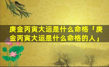 2、庚金丙寅大运是 🌵 什么 🐅 命格的人
