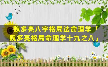魏 🦄 多亮 🌿 格局命理学十九之八
