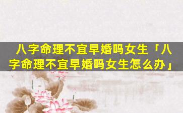 2、八字命理不宜早婚吗 🐬 女生怎么办