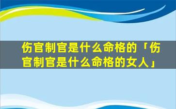 伤官格2、伤官制官是 🐅 什么命格的女人