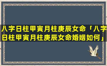 2、八字日柱甲寅月柱庚 🌹 辰女命婚姻如何