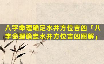 八字命理 🐋 确定水井 🦁 方位吉凶
