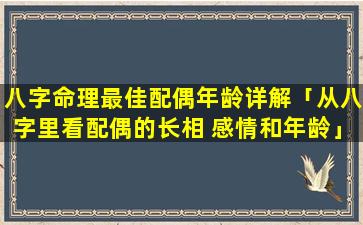 1、八字命理 🐳 最佳配偶年龄 🐠 详解