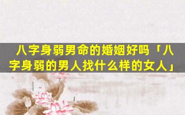 八字身 🌷 弱男命婚 🕊 姻特点: