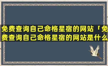 3、免费查询自己命格星宿的网站有哪 🦆 些