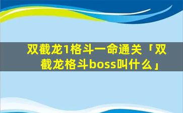 2、双截龙格斗 🦊 boss叫什么 🐝