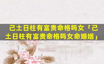 2、己土日柱有 🐠 富 🐈 贵命格吗女命婚姻