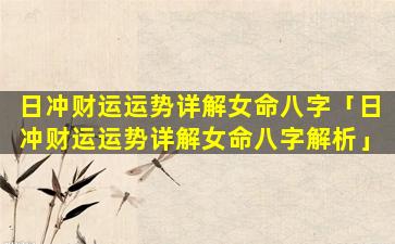 日冲 🐅 财运运势详解女 🐬 命八字解 🐅 析