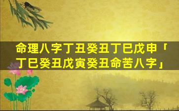 1、命理八 🕸 字丁丑癸丑丁巳戊申